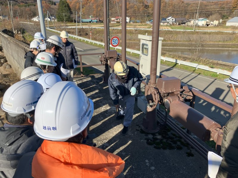 令和7年11月12日(水)、岩手県岩手郡雫石町の篠ケ川原頭首工において、岩手県土地改良事業団体連合会主催による「令和7年度基幹水利施設保全管理技術向上研修会」が開催され、当社水門メンテナンス室の二名が講師として参加いたしました。
