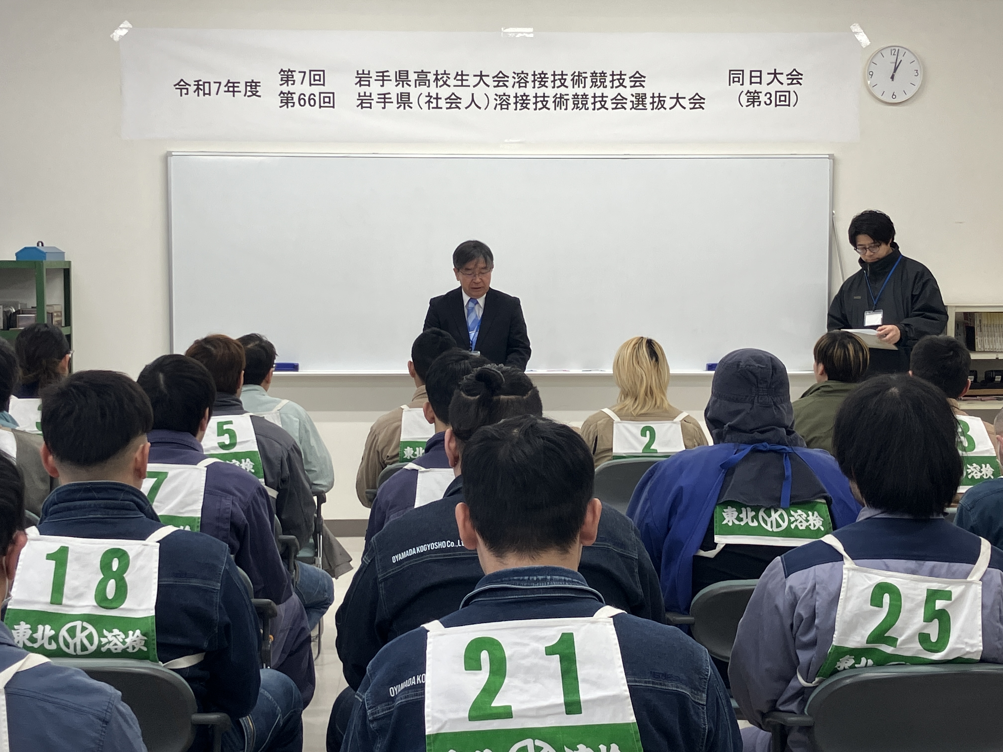 令和8年1月17日 「第66回 岩手県溶接技術競技会 選抜大会」が、ポリテクセンター岩手(花巻市天下田)で開催され、県内からアーク溶接の部6名、半自動溶接の部25名が参加し腕を競い合いました。